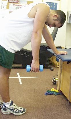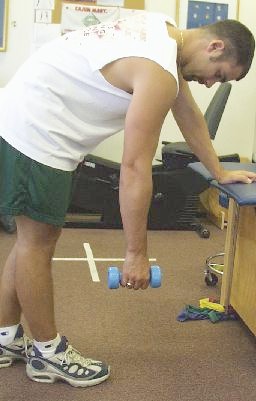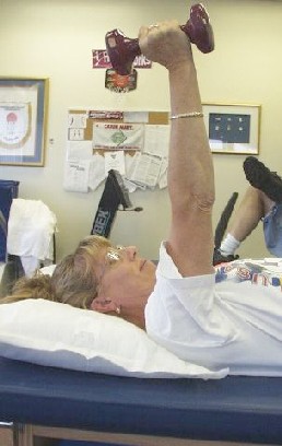 1. Lie on table or floor holding a dumbbell in involved hand.(仰臥,