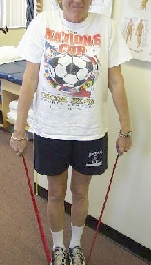 5. Therabands can be used for the same exercise.(另可用彈性帶做同一運動,如圖